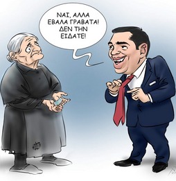 Είτε στέκονται απέναντι σε εξαθλιωμένους, όπως η γριούλα του σκίτσου είτε απέναντι σε χαροκαμένους και κατεστραμμένους, το ίδιο τροπάριο επαναλαμβάνουν: «Βγαίνουμε από τα μνημόνια».