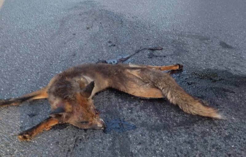 Εκατό μέτρα από τη γέφυρα του ΟΣΕ από την Καλαμάτα προς Ασπρόχωμα και λίγο πριν τα φανάρια, εκεί που έχουν σκοτωθεί αρκετές φορές και συνάνθρωποί μας, υπήρχε μία αλεπουδίτσα σκοτωμένη από το βράδυ του Σαββάτου έως και το απόγευμα της Κυριακής, λίγο πριν την Δύση του Ηλίου, οπότε πήγα ο ίδιος και την απέσυρα, βάζοντάς την εκεί που έπρεπε.