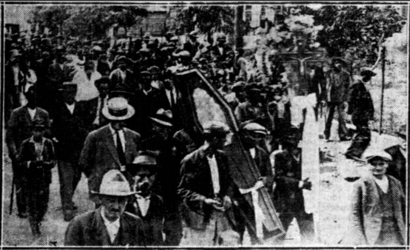 Και ακολουθεί νέα αιματοχυσία: «Καθ΄ όλον το διάστημα η ένοπλος φρουρά επενέβαινε και συνεκρούετο με τους εργάτας και το πλήθος, το οποίον ανερχόμενο προς την κεντρικήν πλατείαν έφθασεν εις το κατάστημα της Εισαγγελίας και διεμαρτυρήθη δια την δολοφονικήν εναντίον του επίθεσιν. Η έξαψις η οποία επεκράτη μεταξύ των πολιτών ενώ εξετυλίσσοντο αι αιματηραί αύται σκηναί, είνε ανωτέρα πάσης περιγραφής. Εφ’ όσον η διαδήλωσις ογκούτο, τα καταστήματα έκλειον τας θύρας των μετά πατάγου, ενώ εις όλην την πόλιν αντήχουν αι κραυγαί των διαδηλωτών, πυροβολισμοί και απέλπιδαι φωναί γυναικών που έκλαιον. Σημειωτέον, ότι ούτε αι επελάσεις των περιπόλων, ούτε οι ριπτόμενοι εις τον αέρα και εναντίον του πλήθους πυροβολισμοί κατώρθωναν να διαλύσουν τους εκμανέντας διαδηλωτάς, οι οποίοι κατέστρεψαν και πλείστα τραμ.