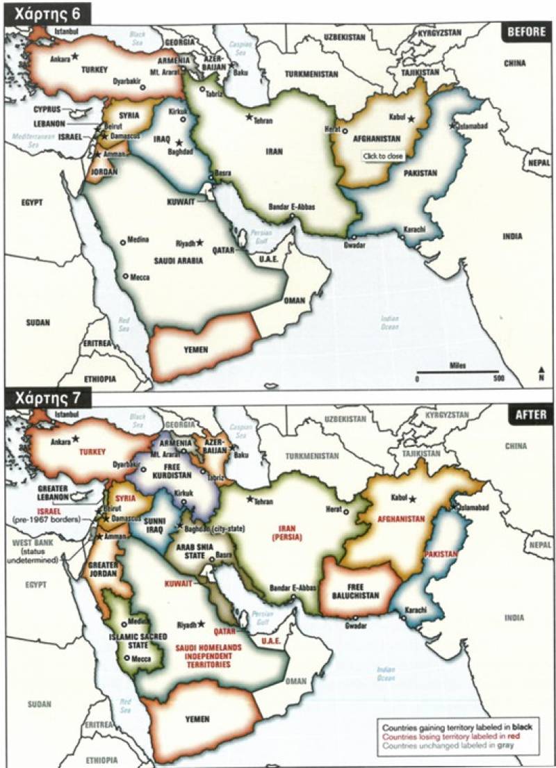 Το ίδιο είχε συμβεί στην Τουρκία προ 20ετίας, όταν στο Armed Forces Journal των ΗΠΑ (Ιούνιος 2006) δημοσιεύθηκαν οι δύο χάρτες που βλέπετε. Ο συνταγματάρχης ε.α. και θεωρητικός της γεωστρατηγικής Ralph Peters έκανε λόγο για αναδιατάξεις στη Μέση Ανατολή, μεταξύ των οποίων ανέφερε ως νέο κράτος και το Ελεύθερο Κουρδιστάν, στο οποίο ενσωμάτωνε τμήματα της Τουρκίας, της Συρίας, του Ιράκ και του Ιράν. Η δημοσίευση του άρθρου προκάλεσε σεισμό στην Τουρκία και διαβήματα έγιναν από τους Τούρκους στο Department of Defence και στο Department of State. Η απάντηση ήταν περίπου: σενάρια εκπονεί ο συγγραφέας.