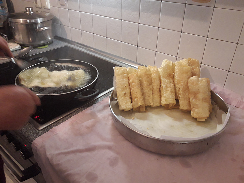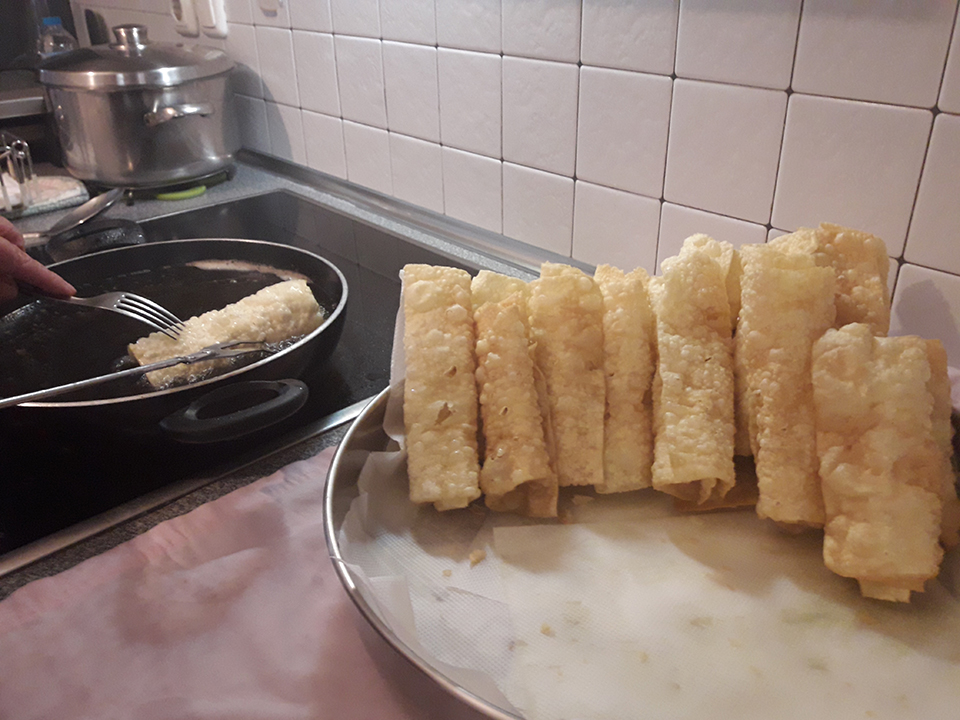Η παρασκευή τους είναι ιδιαίτερα εύκολη αρκεί να διαθέτετε λίγη υπομονή και πολύ μαεστρία στο τύλιγμα… Γενικά είναι πιο εύκολο εάν γίνουν με δύο άτομα. Και στο πέρασμα από τη μηχανή βοηθάει, αλλά και στο τηγάνισμα, εάν ο ένας ετοιμάζει τα κομμάτια και ο άλλος τηγανίζει.