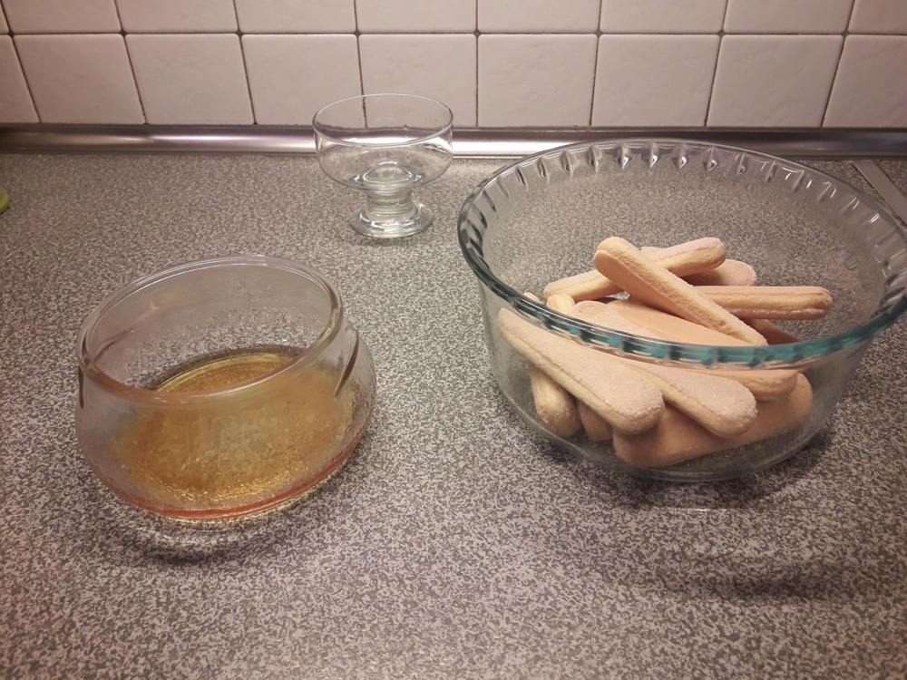Για τη βάση: μπισκότα σαβαγιάρ, μισό φλ. ζάχαρη, 1 φλ. νερό.