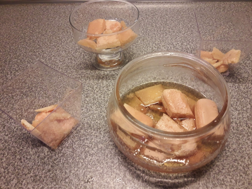(σκεπασμένα με πλαστική μεμβράνη, ώστε να μη χάσουν την υγρασία τους και να μην πάρουν οσμές από τα άλλα τρόφιμα). Επειτα συνεχίζετε με την επόμενη στρώση, με το ζελέ η οποία θα πρέπει να είναι σε θερμοκρασία δωματίου και όχι ζεστή.