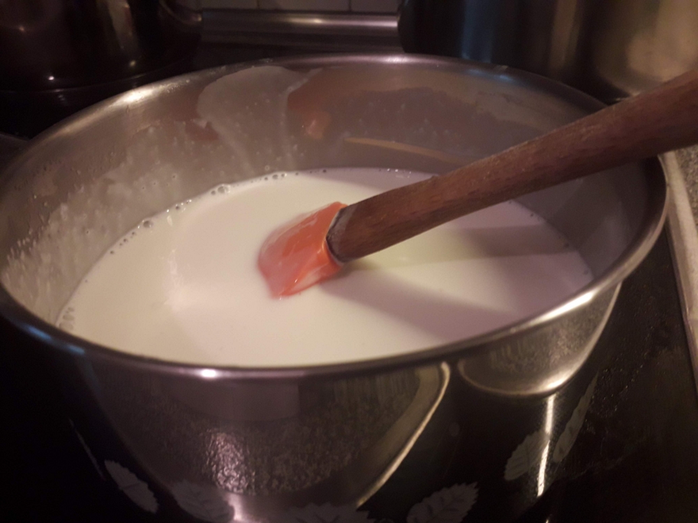 Εκτέλεση: Σε ένα μπολ με κρύο νερό αφήστε τις ζελατίνες για να μαλακώσουν. Ανακατέψτε το γάλα, την κρέμα γάλακτος, τις βανίλιες και τη ζάχαρη μέσα σε μία κατσαρόλα και αφήστε τα να σιγοβράσουν, μέχρι να κάψει το μείγμα και βγάλτε το από τη φωτιά.