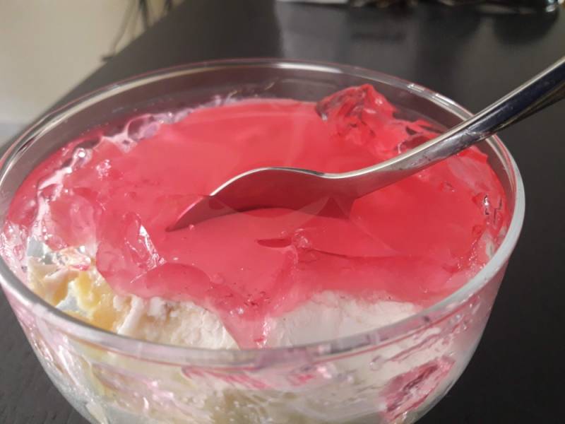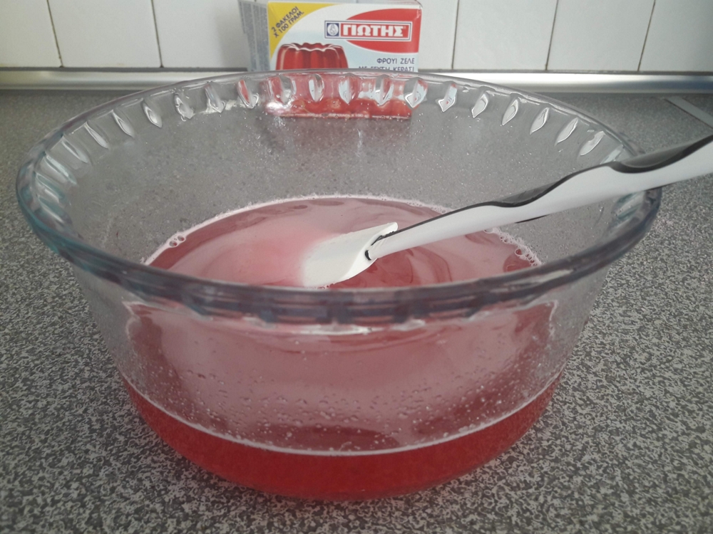 Το ζελέ για να πήξει θέλει πάλι ψυγείο.