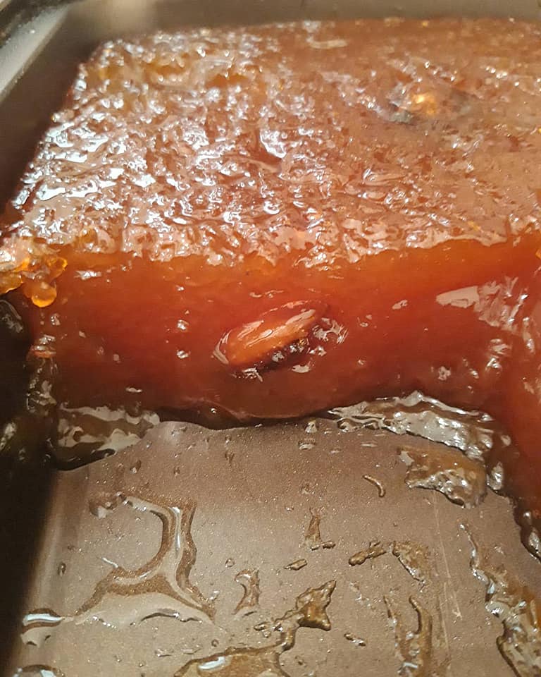 Αυτό δεν μας ανησυχεί, όταν ζεσταθεί το μίγμα θα λιώσει ξανά η καραμέλα. Ρίχνουμε το σπορέλαιο και ανακατεύουμε να ξεκολλήσει από τα τοιχώματα της κατσαρόλας το μίγμα μας. Κατεβάζουμε από την φωτιά προσθέτουμε τα αμύγδαλα και ρίχνουμε το γλυκό σε ταψάκι 20 εκ.