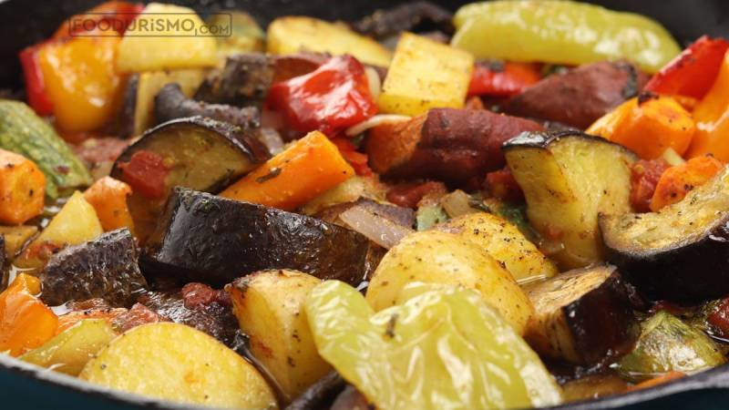 Μπορεί να μαγειρευτεί και στο φούρνο και στην κατσαρόλα, τρώγεται μια χαρά ζεστό αλλά και κρύο την επόμενη ημέρα και φυσικά φτιάχνεται με ό,τι υπάρχει διαθέσιμο σε ζαρζαβατικά. Μπορείτε να χρησιμοποιήσετε μελιτζάνες φλάσκες αλλά και τσακώνικες, πατάτες κοινές αλλά και γλυκοπατάτες, κολοκυθάκια σκέτα ή με τους ανθούς τους, διάφορες πιπεριές, ακόμα και φασολάκια. Η φιλοσοφία αυτού του φαγητού, όπως και τόσων άλλων, είναι να φτιαχτεί ένα φαγητό με ό,τι έβγαζαν οι κήποι των σπιτιών και των περιβολιών. Αν είστε από τους τυχερούς που το καλοκαίρι πάνε στον κήπο του εξοχικού και “τρυγούν” τα μποστάνια για να σκαρώσουν το φαγητό της ημέρας έχει καλώς… αλλιώς μια χαρά θα σας βολέψουν οι φοβερές λαϊκές και τα μανάβικα της γειτονιάς.
