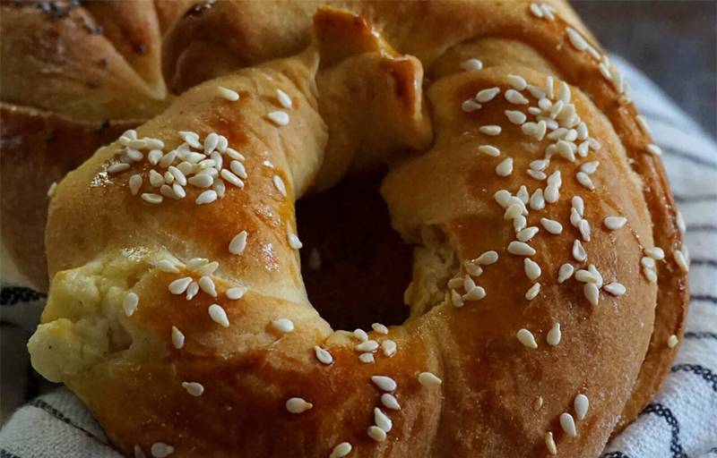 Αλείφουμε με κρόκο και προαιρετικά, πασπαλίζουμε με σουσάμι ή παπαρουνόσπορο.