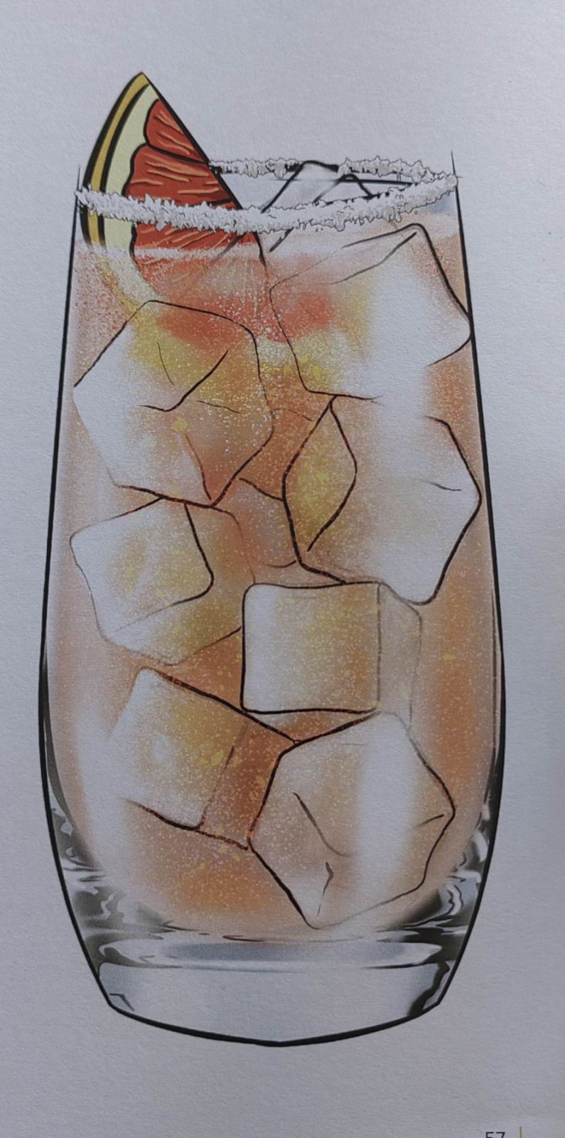 Βρέχουμε το χείλος του ποτηριού ακουμπώντας το σε ένα κομμένο λάιμ ή γκρέιπφρουτ.