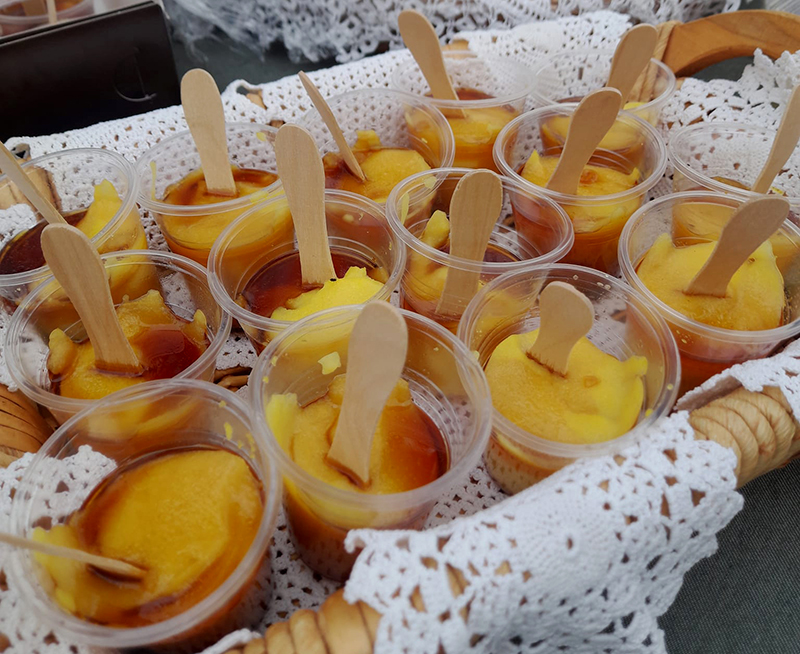 ΕΚΤΕΛΕΣΗ: Βάζουμε σε μια κατσαρόλα το λάδι να ζεσταθεί, ρίχνουμε το αλεύρι και ανακατεύουμε μέχρι να πάρει χρώμα. Προσθέτουμε σιγά-σιγά το νερό ανακατεύοντας μέχρι να πήξει και κατεβάζουμε την κατσαρόλα από τη φωτιά. Με μια κουτάλα τοποθετούμε την κρέμα σε μικρά μπολάκια και όταν κρυώσουν προσθέτουμε από πάνω το πετιμέζι.