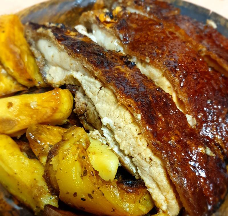 ΥΛΙΚΑ: Κρέας χοιρινό 2 κιλά , 1 ½ κιλό πατάτες, 10 κ.σ. μουστάρδα , 6 κ.σ. πετιμέζι, χυμό και ξύσμα από 1-2 πορτοκάλια.