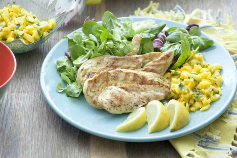 Tips : μπορείτε να το φτιάξετε και μπουτάκια κοτόπουλου και να προσθέσετε μαζί με το μάνγκο ένα πεπονάκι Γκουανταλούπης