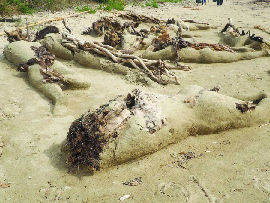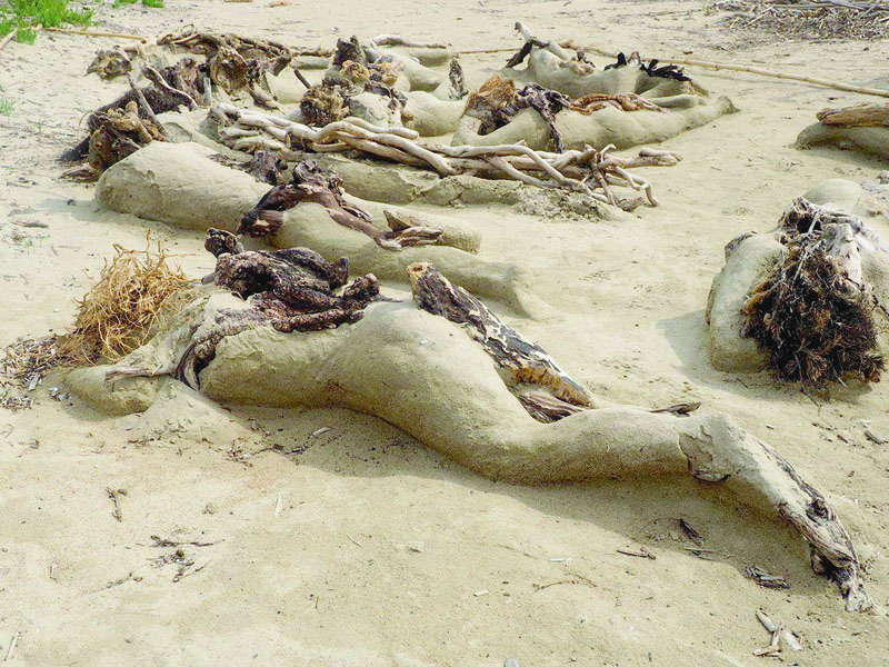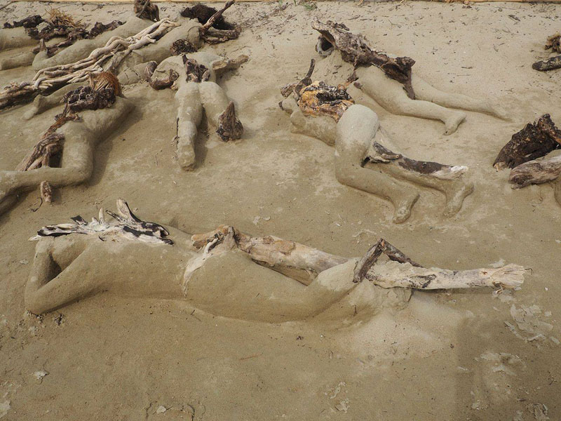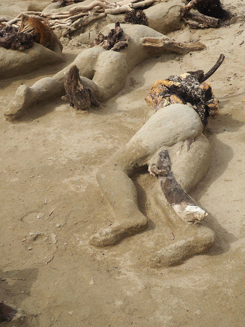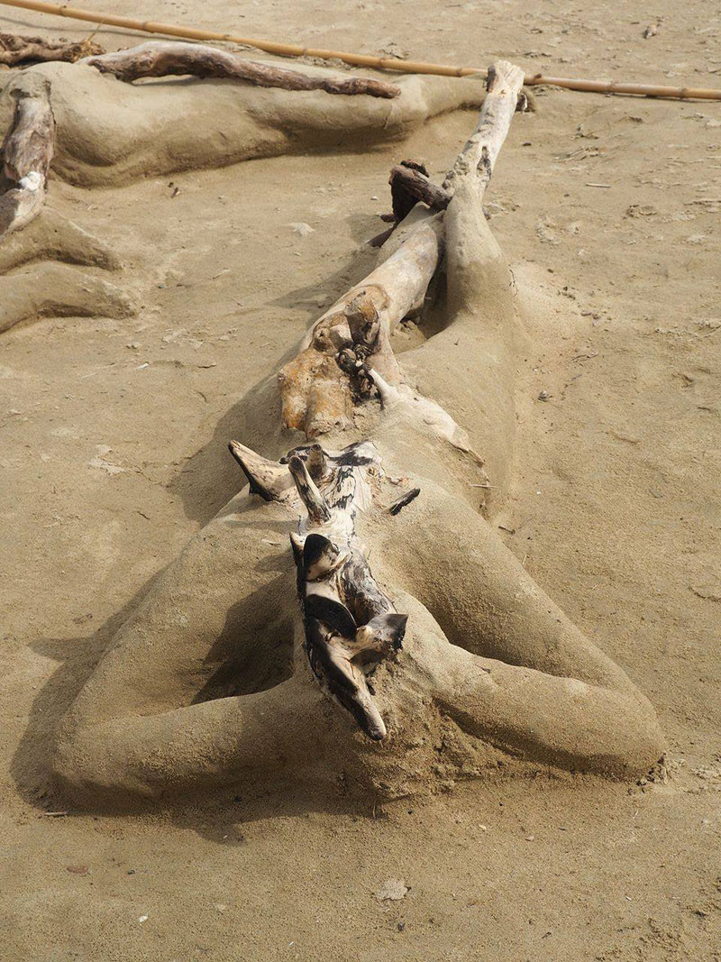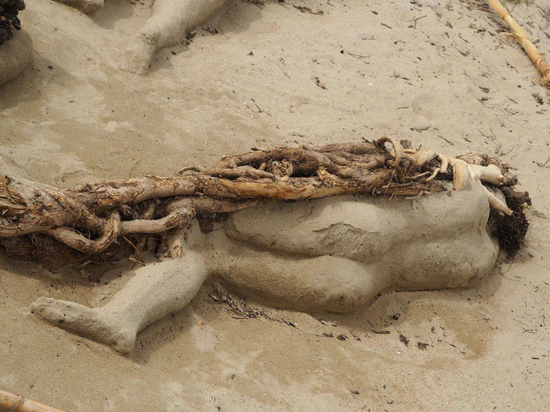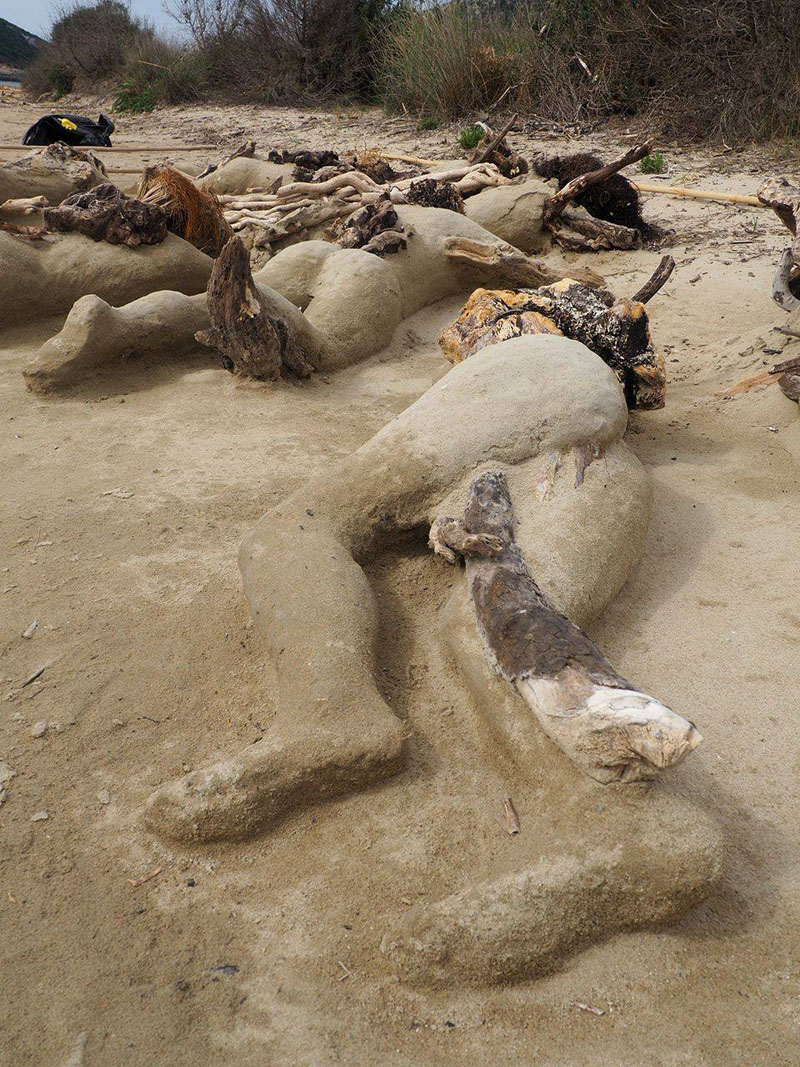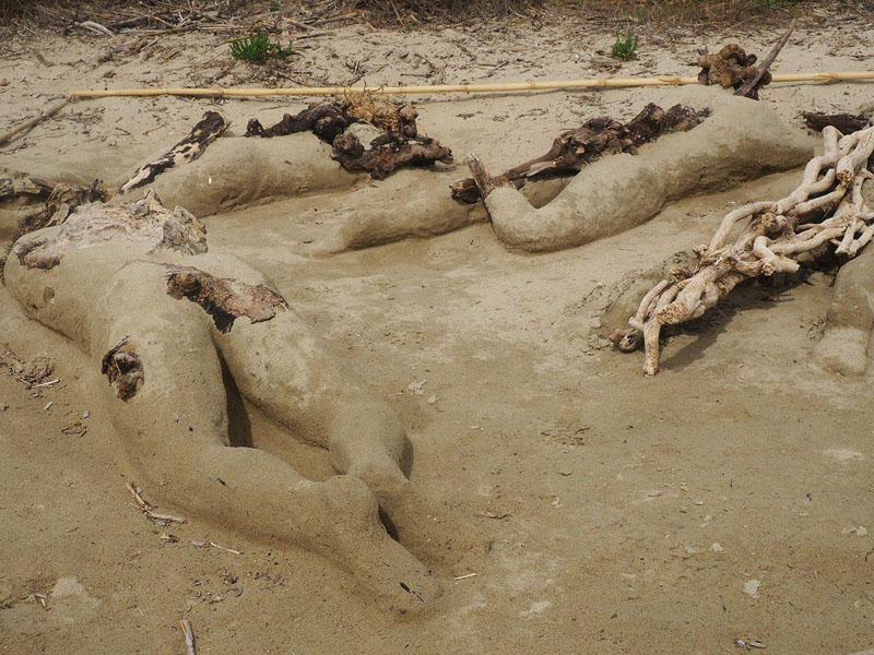 Από ό,τι μαθαίνουμε πάντως, δεν είναι η πρώτη φορά που άγνωστοι δημιουργούν ανάλογα έργα τέχνης στην άμμο σε παραλίες της γύρω περιοχής. Οι φωτογραφίες είναι της Πόπης Χαρίτου.
