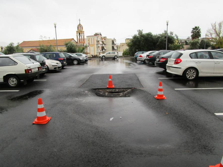 Νέα καθίζηση σημειώθηκε στο πάρκινγκ του νέου Δημαρχείου Καλαμάτας, δίπλα στην προηγούμενη που αποκαταστάθηκε.