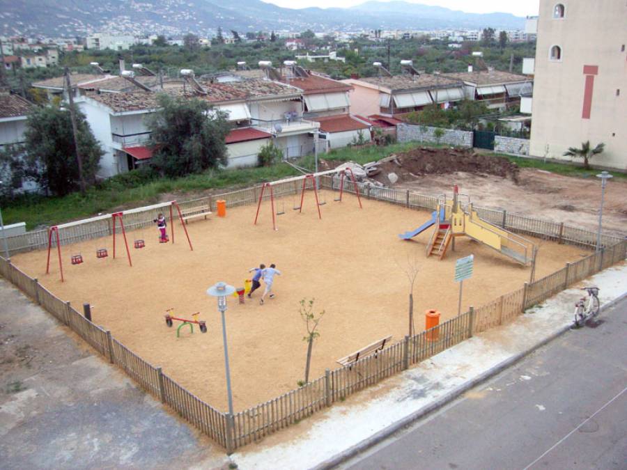 Τα παιδάκια παίζουν σε έναν σύγχρονο κι ελκυστικό παιδότοπο στη γειτονιά τους. Εκείνο που απομένει, είναι η φροντίδα και αναβάθμιση του περιβάλλοντος χώρου, με δενδροφύτευση και παγκάκια, όπως έχει προβλεφθεί.