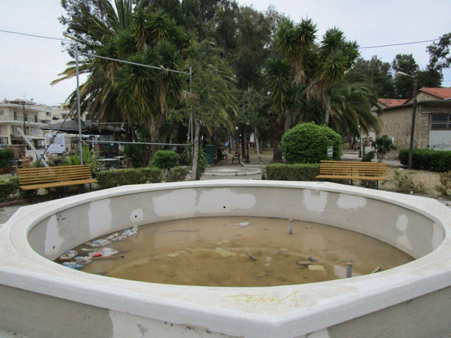 Καθαρίστηκε το άλσος του Λιμενικού Ταμείου Καλαμάτας, όμως, το σιντριβάνι παραμένει βρόμικο και άχρηστο.