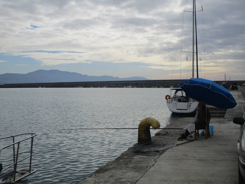 Εικόνα στο λιμάνι της Καλαμάτας, στη δυτική προκυμαία, μπροστά από τους μύλους.