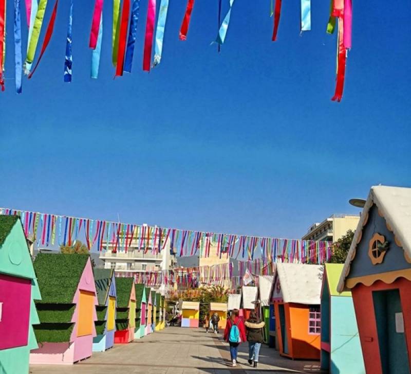 Σε καρναβαλικούς ρυθμούς κινούνται τα σπιτάκια στο πάνω μέρος της κεντρικής πλατείας της Καλαμάτας μιας και στο σημείο ξεκίνησε να λειτουργεί από τη Δευτέρα καρναβαλικό χωριό.