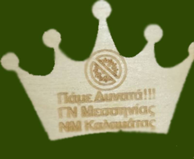 Κονκάρδες με κορόνα, που γράφουν “Πάμε δυνατά! ΓΝ Μεσσηνίας ΝΜ Καλαμάτας”, φορά το υγειονομικό και λοιπό προσωπικό του Νοσοκομείου Καλαμάτας.