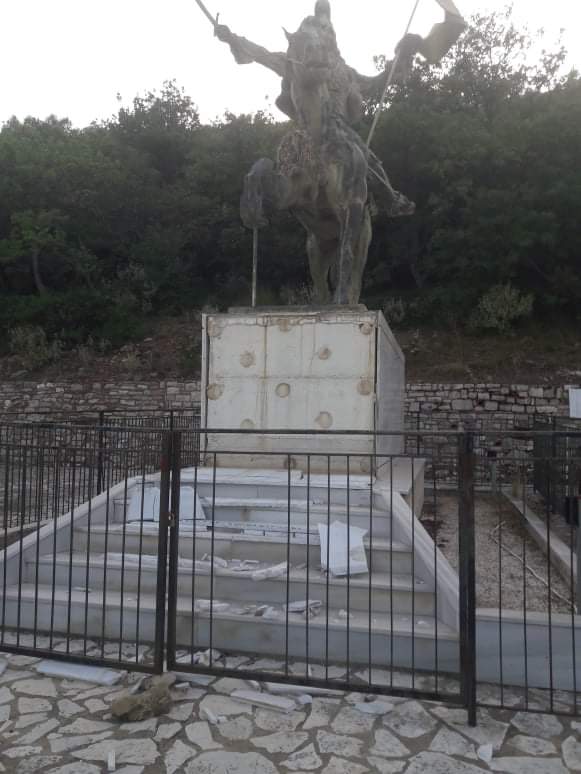 Το μνημείο έχει υποστεί σημαντικές φθορές και πολλά από τα μάρμαρα έχουν σπάσει, ενώ ο περιβάλλων χώρος δείχνει παραμελημένος.