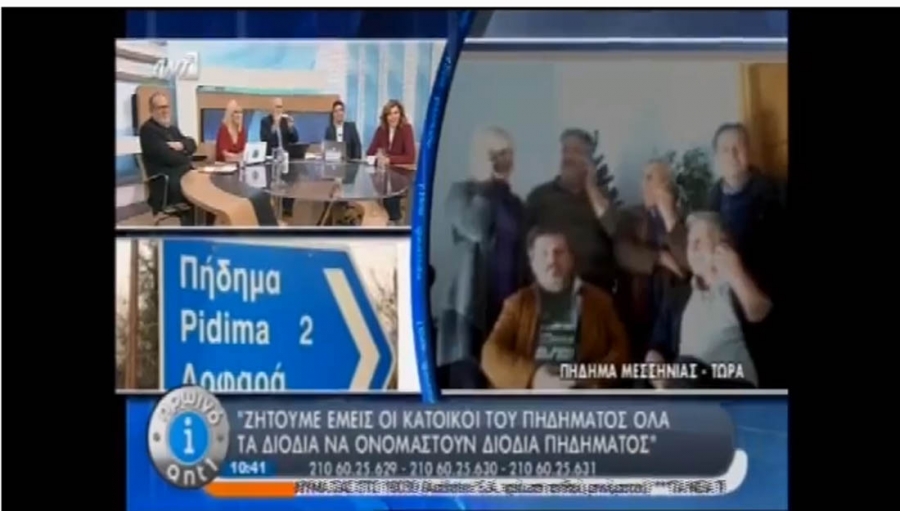 Την τιμητική τους είχαν σήμερα το πρωί στην εκπομπή “Πρωινό ΑΝΤ1” του Γιώργου Παπαδάκη το Πήδημα και ο Αγιος Φλώρος. Με αφορμή το αίτημα των κατοίκων για μετονομασία του σταθμού διοδίων από Καλαμάτας σε πηδήματος ήταν μία πρώτης τάξεως ευκαιρία για την προβολή τόσο των δύο χωριών, όσο και τις ευρύτερης περιοχής της Καλαμάτας. Ο πρόεδροι των Τοπικών Κοινοτήτων Πηδήματος Γιώργος Κάργας και Αγίου Φλώρου Αναστασία Μπελογιάννη συνοδευόμενοι από μέλη των συμβουλίων, αλλά και τον “πρόεδρο των προέδρων” Στέλιο Λιακέα μίλησαν επί περίπου 10 λεπτά τόσο για το περίεργο των ονομάτων Πήδημα και Αγιος Φλώρος, όσο και για την εύκολη πρόσβαση στην Μεσσηνία που εξασφαλίζει ο νέος αυτοκινητόδρομος.