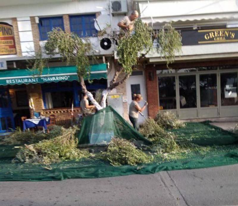 Ολα με ελαιόλαδο, γράφει η επιγραφή στο μαγαζί και οι σαλάτες με αγουρέλαιο, είπε ο ιδιοκτήτης του μετά τη συγκομιδή τους.