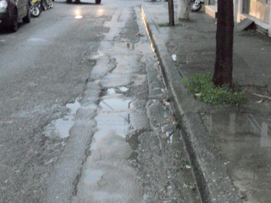 ΒΟΜΒΑΡΔΙΣΜΕΝΟ τοπίο θυμίζουν οι περισσότεροι δρόμοι, ακόμα και στο κέντρο της Καλαμάτας. Το πρόβλημα με τις λακκούβες και τους κινδύνους που ελλοχεύουν είναι γνωστό, ενώ γίνεται εντονότερο όταν βρέχει και οι λακκούβες μετατρέπονται σε λούμπες. Η συγκεκριμένη είναι στην οδό Γεωργούλη αλλά, πιστέψτε μας, δεν διαφέρει σε τίποτα απ' τις αμέτρητες σ' όλη την πόλη!