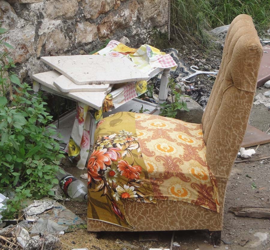 ΜΙΑ… ωραία γωνίτσα έχει δημιουργηθεί σε πεζοδρόμιο της οδού Μπουλούκου, με την -κομμάτι…- ταλαιπωρημένη πολυθρόνα και το σπασμένο τραπεζάκι.
