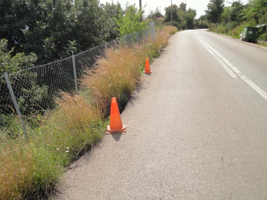 ΚΩΝΟΙ έχουν τοποθετηθεί σε επικίνδυνο σημείο του δρόμου Ριζόμυλος - Κορώνη, στο τμήμα ανάμεσα σε Καλαμάκι και Χράνους. Στην άκρη έχει υποχωρήσει η περίφραξη του κτήματος και η υψομετρική διαφορά εγκυμονεί κινδύνους για όποιον οδηγό ξεφύγει από την πορεία του. Και αυτό δεν είναι το μοναδικό επικίνδυνο σημείο της προβληματικής διαδρομής... σ’ έναν από τους πιο σημαντικούς δρόμους της Μεσσηνίας. Επειδή με κώνους δεν υπάρχει προστασία, οι αρμόδιες υπηρεσίες οφείλουν να δώσουν τις πραγματικές λύσεις. Γιατί πρόκειται για την προστασία της ανθρώπινης ζωής.
