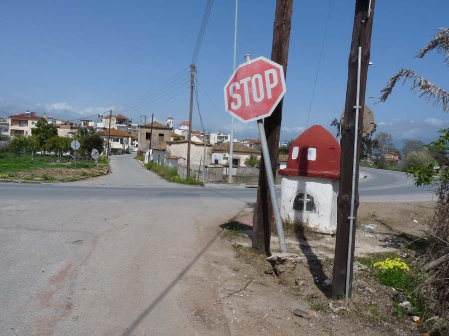 ΛΙΓΟ θέλει και θα πέσει το STOP στην έξοδο του δρόμου από τον Αγιο Νικόλαο Μπούκας στο δρόμο Ασπροχώματος - Πύλου. Εχει πρόχειρα στηριχθεί στην κολόνα της ΔΕΗ και όπως προδίδει η βάση του, από κάπου αλλού έχει... ξεκωλωθεί.