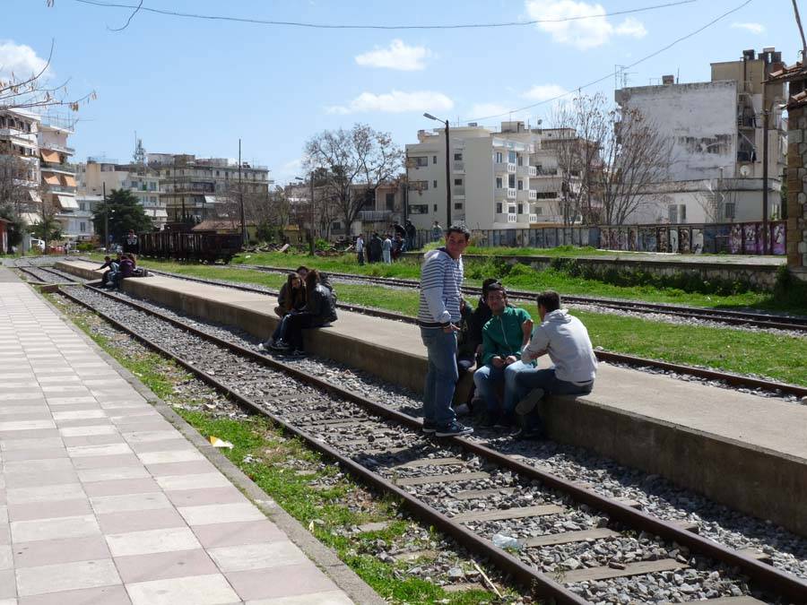 ΣΤΕΚΙ μαθητών του γειτονικού σχολικού συγκροτήματος είναι οι γραμμές του τρένου στον κεντρικό σταθμό του ΟΣΕ στην Καλαμάτα. Ομορφη εικόνα, που συνοδεύεται από γέλια και ζωντάνια στο σταθμό, όπου τρένα πολύ σπάνια κυκλοφορούν.