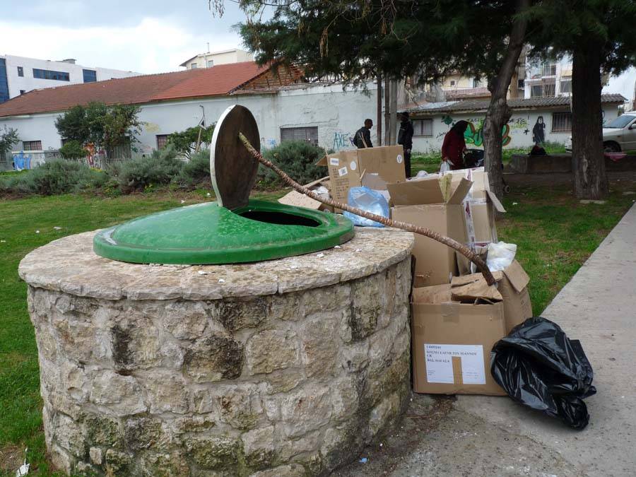 ΚΑΠΟΙΟΣ λόγος ίσως υπάρχει για να μένει το καπάκι του κάδου ανοιχτό. Κανένας λόγος όμως δεν υπάρχει για να στοιβάζονται δίπλα από τον κάδο - πηγάδι τόσα χαρτόκουτα και άλλα ανακυκλώσιμα υλικά, σε σημείο όπου δεν υπάρχει μπλε κάδος ανακύκλωσης!