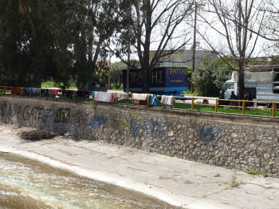 Οσο και αν η εικόνα έχει να κάνει με τη νοικοκυροσύνη, είναι αδύνατο να μην προβληματιστεί κάποιος για τα ζητήματα... δημόσιας υγείας, που ενδεχομένως να ήταν λιγότερα εάν υπήρχε οργανωμένος χώρος φιλοξενίας των περιφερόμενων πραματευτών.