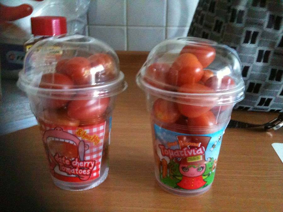 ΠΟΣΟ απλή και ωραία ιδέα προώθησης αγροτικού προϊόντος! Πήραν τα πλαστικά ποτήρια του καφέ, τύπωσαν πάνω τη φίρμα τους, τα έκλεισαν με σελοτέιπ και νάτα! Τα τοματάκια της Κρήτης τρώγονται και ως σνακ, αφού μπορούν να ξεπλυθούν, να στραγγίξουν και να φαγωθούν στο γραφείο πανεύκολα! Τι ωραίο που θα ήταν να βλέπαμε έτσι και τα δικά μας τοπικά προϊόντα, όπως σταφίδες και σύκα ξερά, να πωλούνται στα περίπτερα.