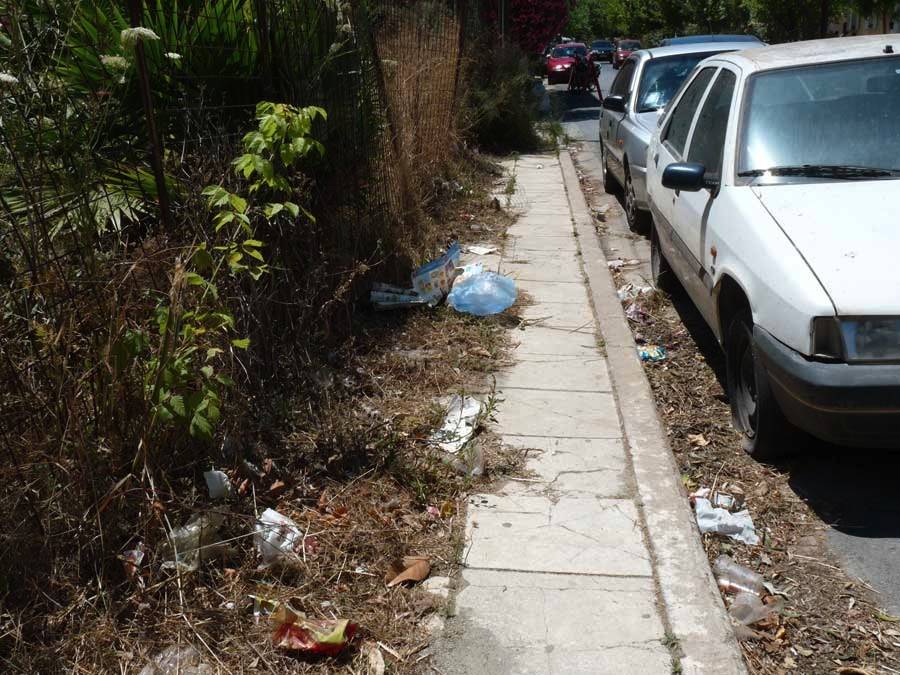 ΝΤΡΟΠΙΑΣΤΙΚΗ η εικόνα μετά το κόψιμο των ξερόχορτων στο πεζοδρόμιο της οδού Ακρίτα, κοντά στο λιμάνι.