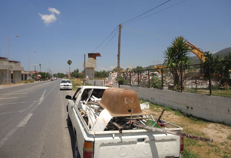 ΟΠΟΥ γκρέμισμα και καταστροφή οι κυνηγοί μετάλλων σπεύδουν για το μεροκάματο. Αυτό έκαναν και χθες, με αφορμή την κατεδάφιση κτηρίου για την κατασκευή του περιφερειακού. Και απ' ό,τι φαίνεται, τίποτα δεν αφήνουν να πάει χαμένο.