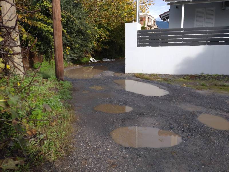 Οπως φαίνεται στη φωτογραφία, μετά από βροχοπτώσεις δημιουργούνται από τις λακκούβες μικρές λίμνες, τη στιγμή που από το σημείο περνούν καθημερινά πολλοί οδηγοί.