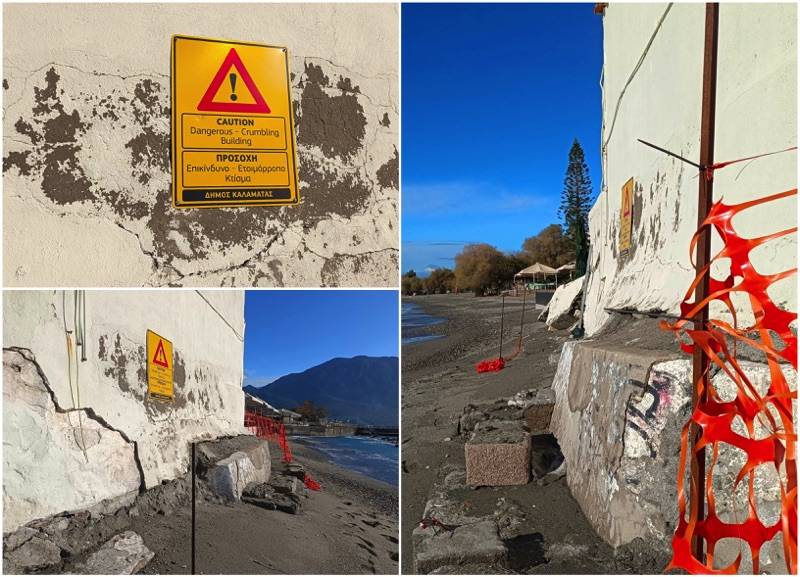 Παρότι συμπληρώθηκαν τέσσερα χρόνια από τον κυκλώνα «Ζορμπάς» και τις καταστροφές που προκάλεσε, το σκηνικό βομβαρδισμένου τοπίου παραμένει, με τις διαχωριστικές κορδέλες που αποτρέπουν τους λουόμενους να πλησιάσουν, να έχουν κοπεί. Από την πλευρά του, ο δήμος ενημερώνει με πινακίδα πως πρόκειται για ετοιμόρροπο κτίσμα, δείχνοντας πως δεν βρίσκεται στις άμεσες προθέσεις του να το κατεδαφίσει και να ανοίξει επιτέλους ο χώρος. Συν τοις άλλοις, ανάμεσα στα μπάζα έχουν συσσωρευτεί πολλά σκουπίδια από περιπατητές, με την όλη εικόνα να αποτελεί δυσφήμηση για την Παραλία.