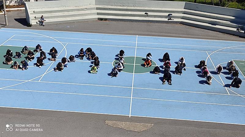 Με πρωτοβουλία των μαθητών της Α’ τάξης σχημάτισαν τη λέξη “θλίψη”, η οποία πραγματικά αποτυπώνει τα συναισθήματα όλων μας για την τραγωδία στα Τέμπη.