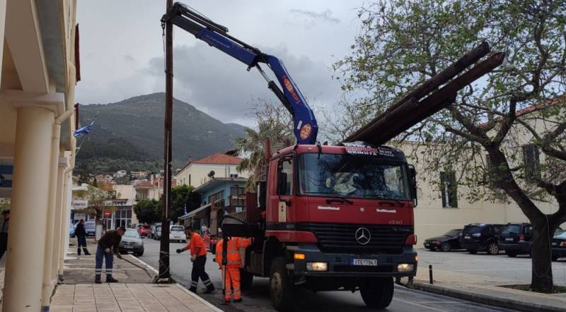 Ξεκίνησαν να βγαίνουν χθες οι πρώτες κολόνες της ΔΕΗ από την περιοχή του Εμπορικού Κέντρου Κυπαρισσίας, όπου έγινε ανάπλαση, μετά την υπογειοποίηση του ηλεκτρικού δικτύου και τις συνδέσεις που ήδη έχουν γίνει.