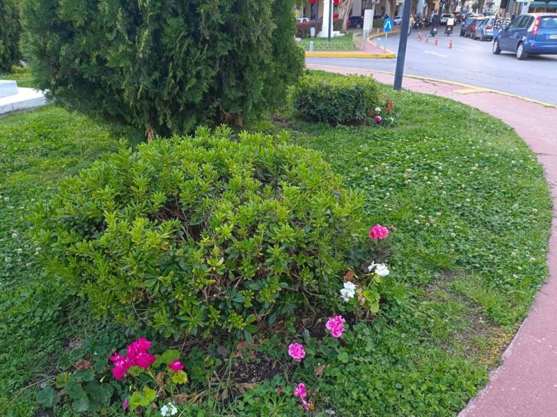 Με πολύχρωμα άνθη έχουν ομορφύνει κόμβοι της Καλαμάτας τις τελευταίες μέρες.