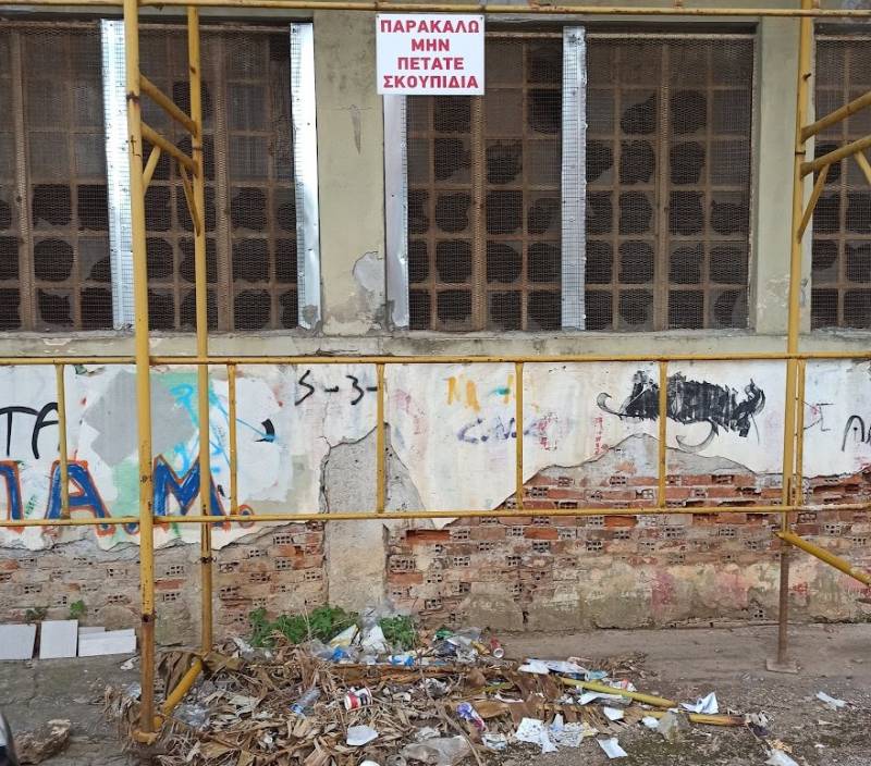 Η μίνι χωματερή κάτω από την πινακίδα που γράφει «ΠΑΡΑΚΑΛΩ ΜΗΝ ΠΕΤΑΤΕ ΣΚΟΥΠΙΔΙΑ» βρίσκεται στη βόρεια πλευρά του πρώην καπνεργοστασίου «Καρέλια» απέναντι από την είσοδο του 1ου Δημοτικού Σχολείου Καλαμάτας, προφανώς για να εκπαιδεύονται οι μαθητές στην… ασχήμια.