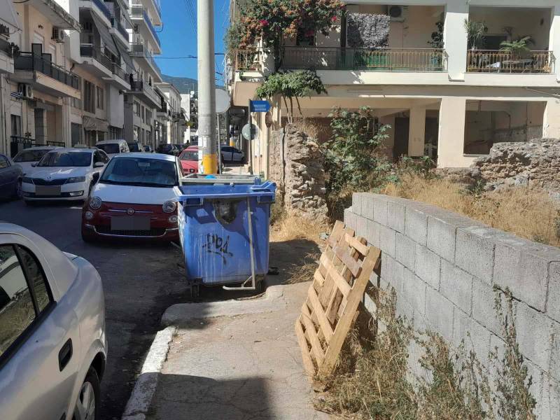 Ανύπαρκτο, λόγω των κάδων σκουπιδιών και ανακύκλωσης -και όχι μόνο. Είναι από τα σημεία της Καλαμάτας που ο πεζός βρίσκεται υπό διωγμό. Και το χειρότερο, δεν υπάρχει πρόβλεψη και ενδιαφέρον για να αλλάξει η κατάσταση και να προστατευτεί ο πεζός που κυκλοφορεί σε μια πόλη ελκυστική, η οποία δηλώνει… περήφανη, γιατί... αναπτύσσεται.