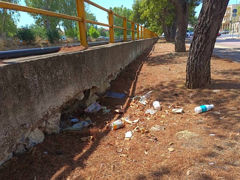 Όπως φαίνεται στη φωτογραφία, η σκιά των δέντρων σε συνδυασμό με το πεζούλι αποτελούν άτυπα στέκια για κάποιους, οι οποίοι όμως «ξεχνούν» εκεί ότι δεν τους χρειάζεται.
