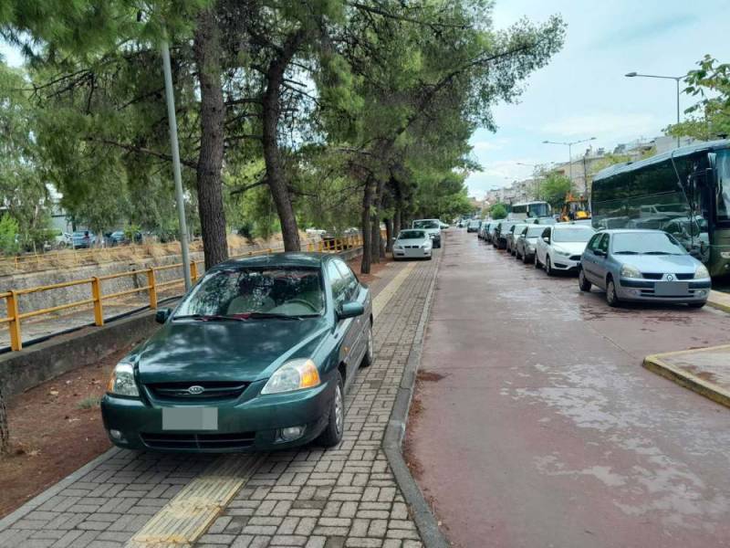 Τρία αυτοκίνητα έχουν καβαλήσει στο πεζοδρόμιο κι έχουν καταλάβει και την όδευση των τυφλών. Και απ’ ό,τι καταλάβαμε, η παραβατική αυτή εικόνα κράτησε ώρα. Εικόνα που δεν ταιριάζει σε μια πόλη φιλική για τους πεζούς και τα ΑμεΑ, όπως… υπερηφανεύεται ότι είναι η Καλαμάτα.