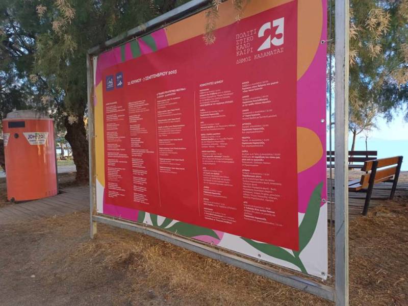 Οι πολιτιστικές εκδηλώσεις του καλοκαιριού συνεχίζουν να προβάλλονται από τα μπάνερ που τοποθετήθηκαν τον περασμένο Ιούνιο από το Δήμο Καλαμάτας.