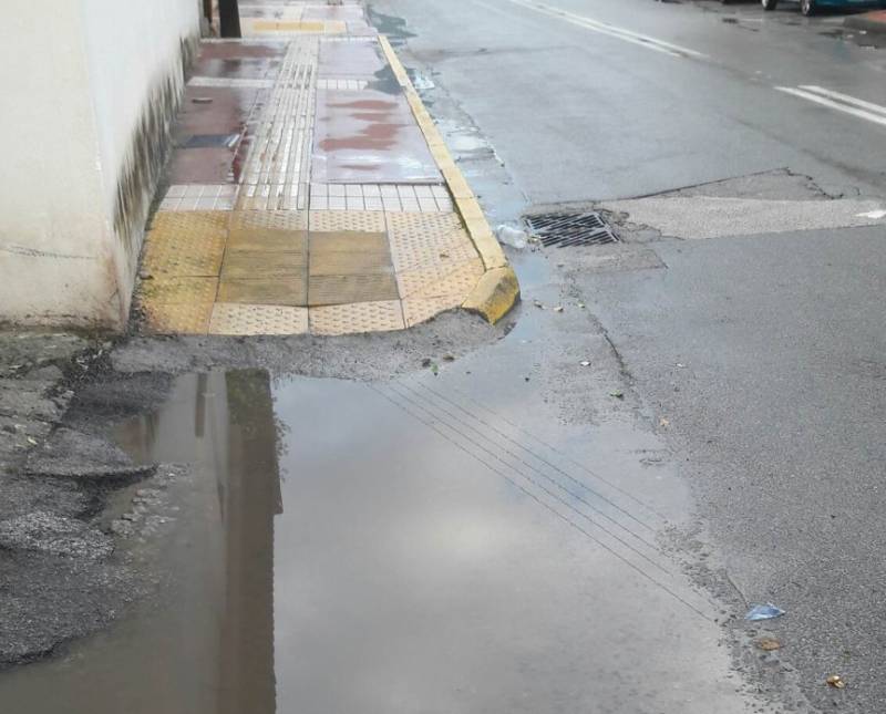 Όπως φαίνεται, μπορεί τα πεζοδρόμια στο ύψος αυτό να διαθέτουν ράμπες, ωστόσο ενδιάμεσα μαζεύεται νερό, με ό,τι αυτό συνεπάγεται για τη μετακίνησή τους.
