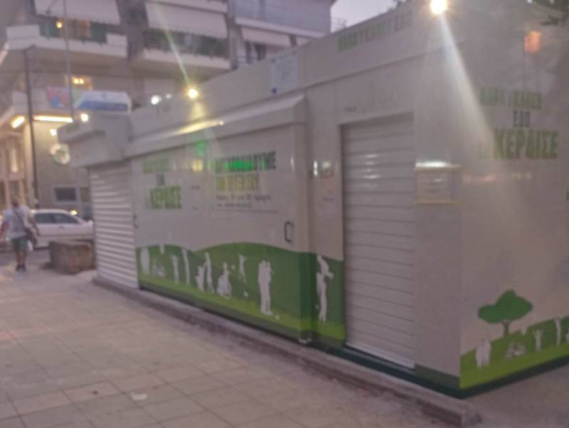 Ένα κοντέινερ ανταποδοτικής ανακύκλωσης τοποθετήθηκε δυτικά του ιστορικού Δημαρχείου, μεταξύ του αναψυκτηρίου και της παιδικής χαράς.