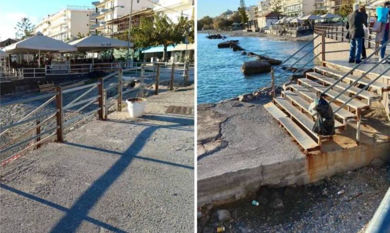 Όσο γι’ αυτήν που οδηγεί στον μόλο, το τελευταίο σκαλί συνεχίζει να βρίσκεται στον αέρα, με όσους τη διέρχονται να πρέπει αναγκαστικά να το αποφύγουν αν δεν θέλουν να βρεθούν προ δυσάρεστων εκπλήξεων.
