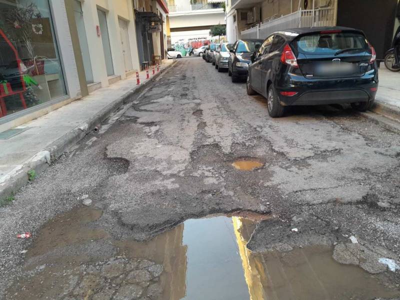 Σε τραγική κατάσταση βρίσκεται ο μικρός ανώνυμος δρόμος, ο πρώτος παράλληλος νότια της Βασιλ. Γεωργίου, μεταξύ Αριστοδήμου και Κανάρη, στο κέντρο της Καλαμάτας.